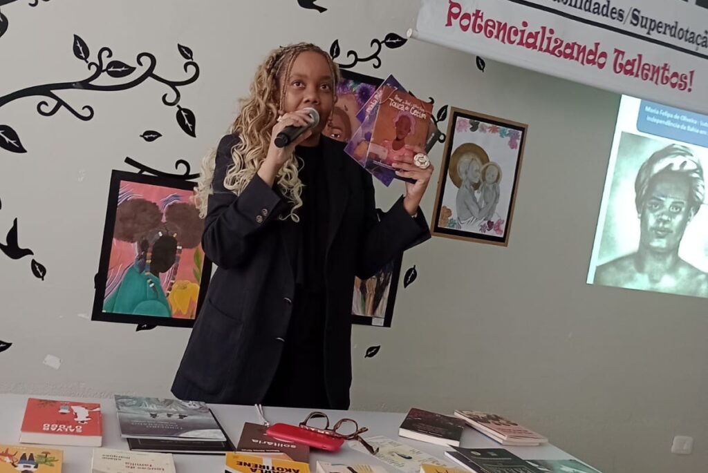 A atividade fez parte de uma série de ações voltadas ao letramento racial crítico em escolas públicas, que Sara tem realizado com turmas do Ensino Fundamental II ao Ensino Médio. “Tenho conversado bastante com alunos e alunas desde a 5ª série até o 3º ano. Tem sido uma alegria, tem sido maravilhoso”, contou.